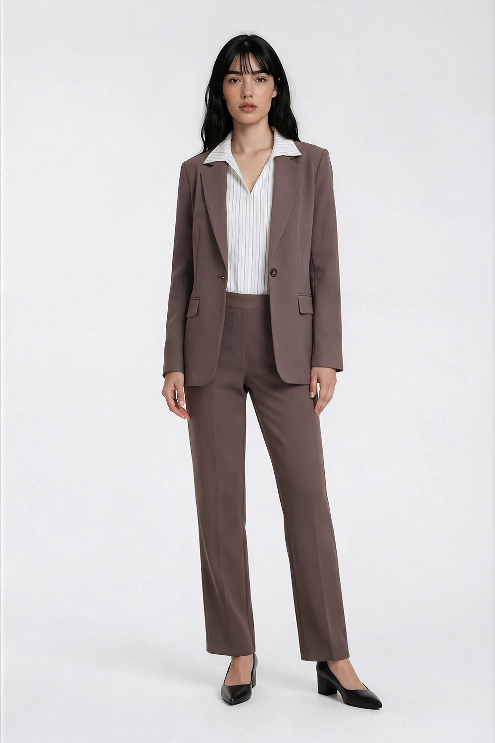 Elise Tailored Straight Leg Pants in Warm Taupe