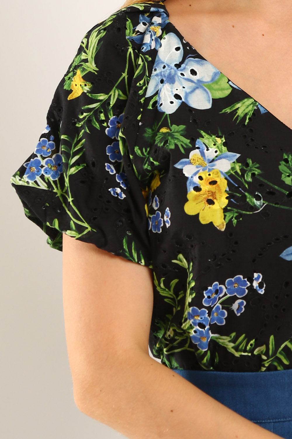 Merlyn Eyelet Top in Black Floral